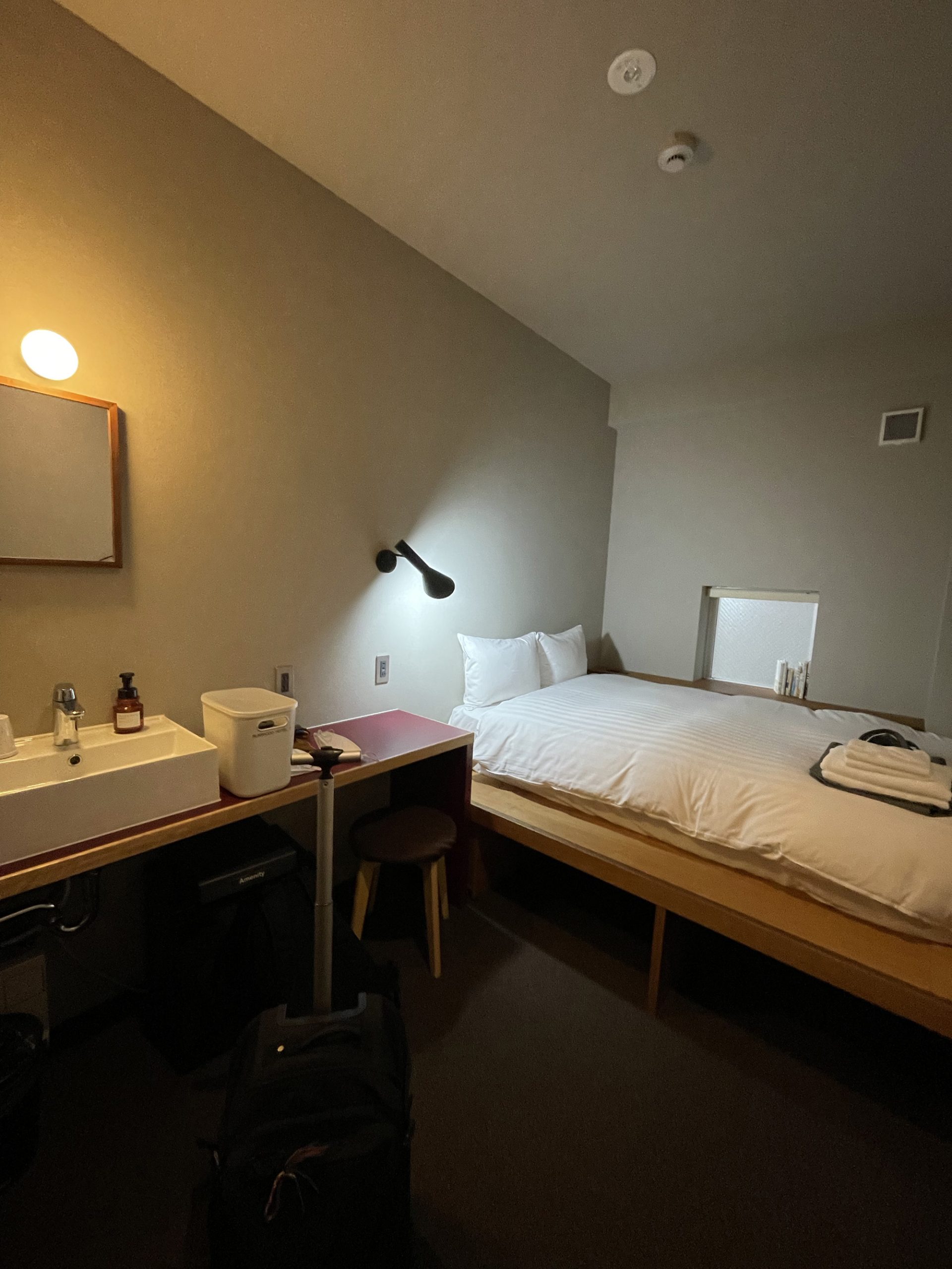 博多空港で抗原検査をしたりで、ようやくBUNSHODO HOTELへチェックイン。
