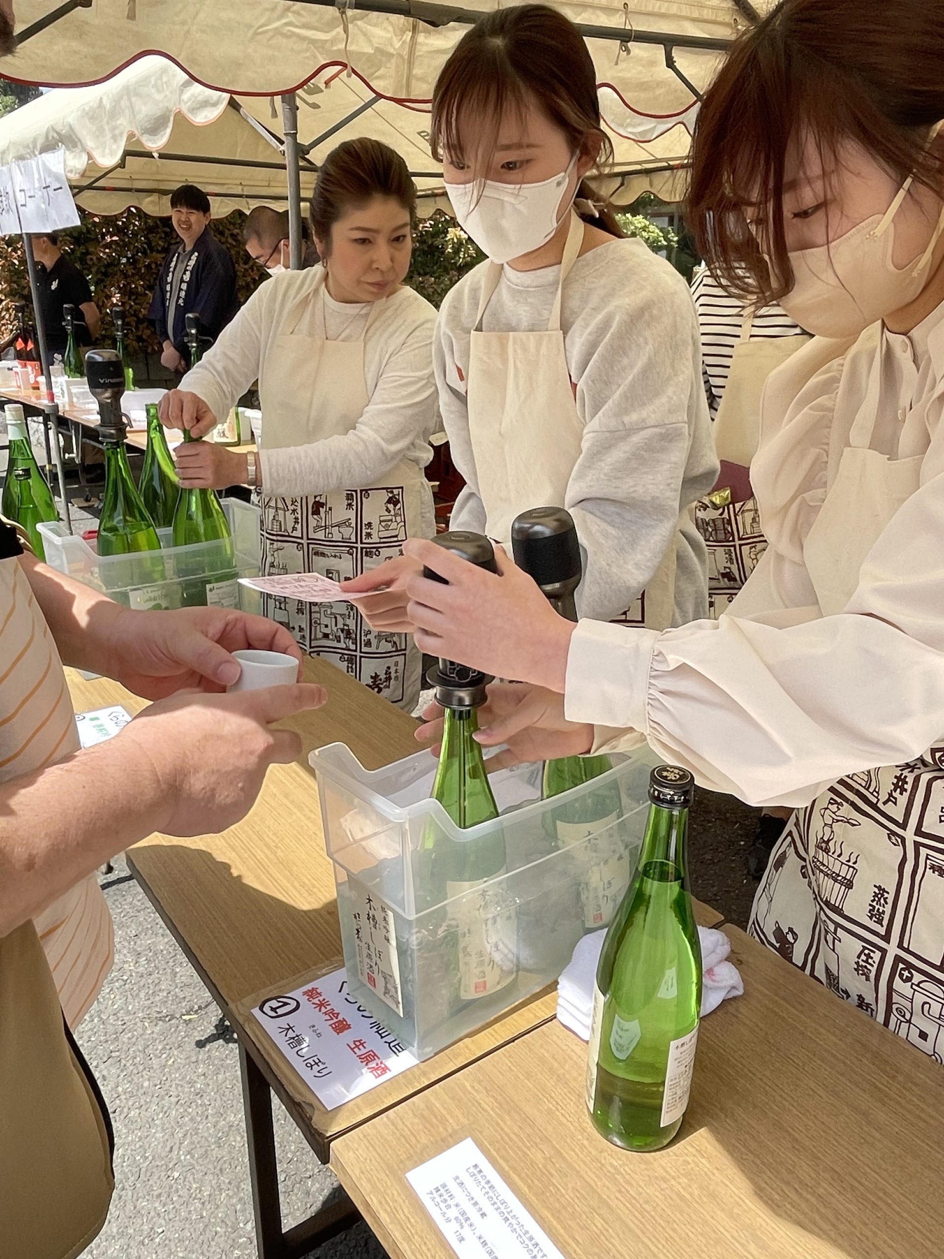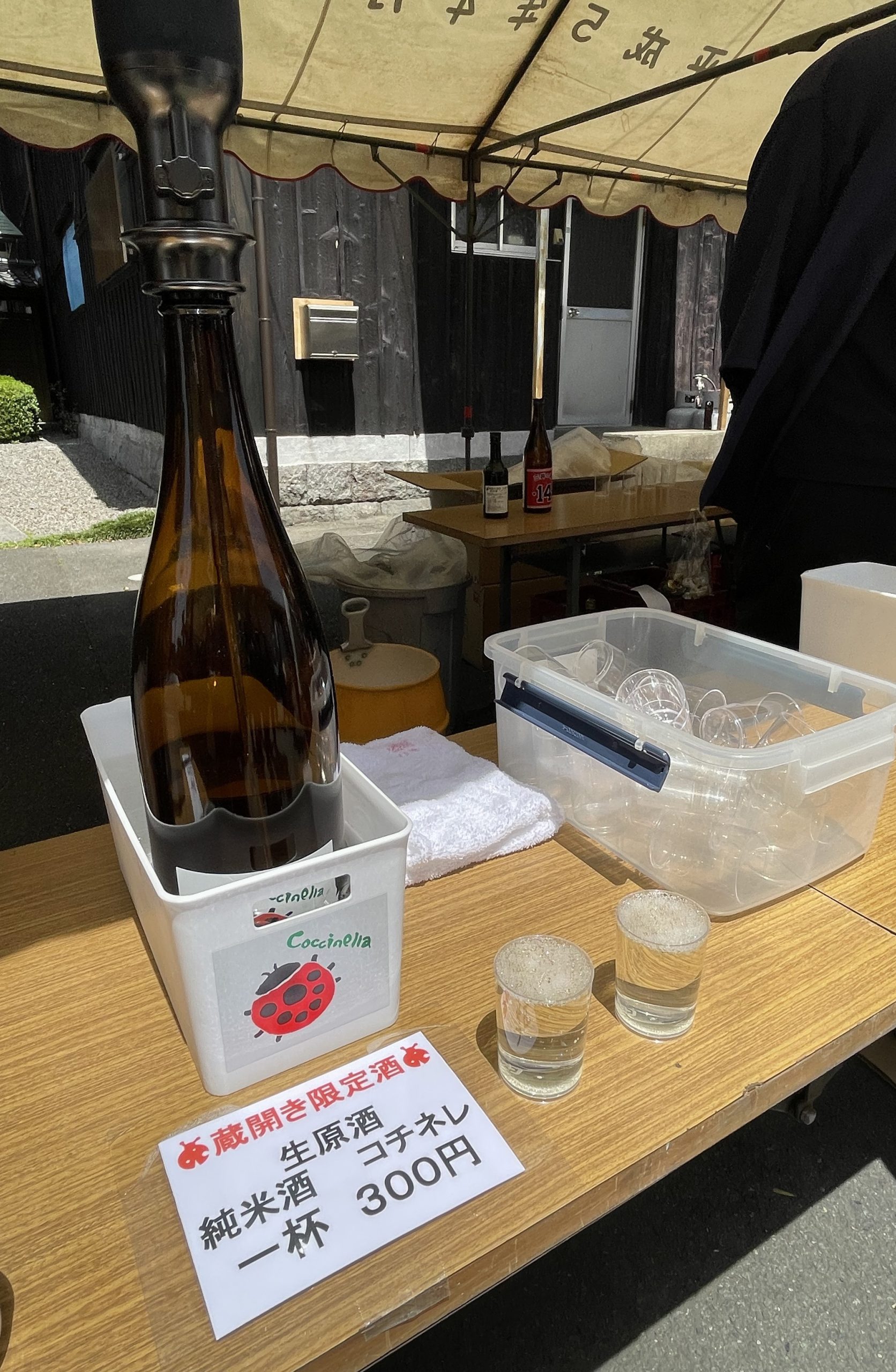 まずはおちょこで2種を1杯ずつ頂いてホッとひと息。フードやケーキ、雑貨のブースも眺めつつ、その後別料金で「クアドリフォ」「コレチネ」など限定生原酒などを頂いた。こちらは100cc程入るプラカップで提供され、たっぷりと味わえた。どれも優しい香りとしっかりボトム、蔵で味わうと尚さら美味い。とここで、ご自宅用のお酒購入したところ現金がゼロに。