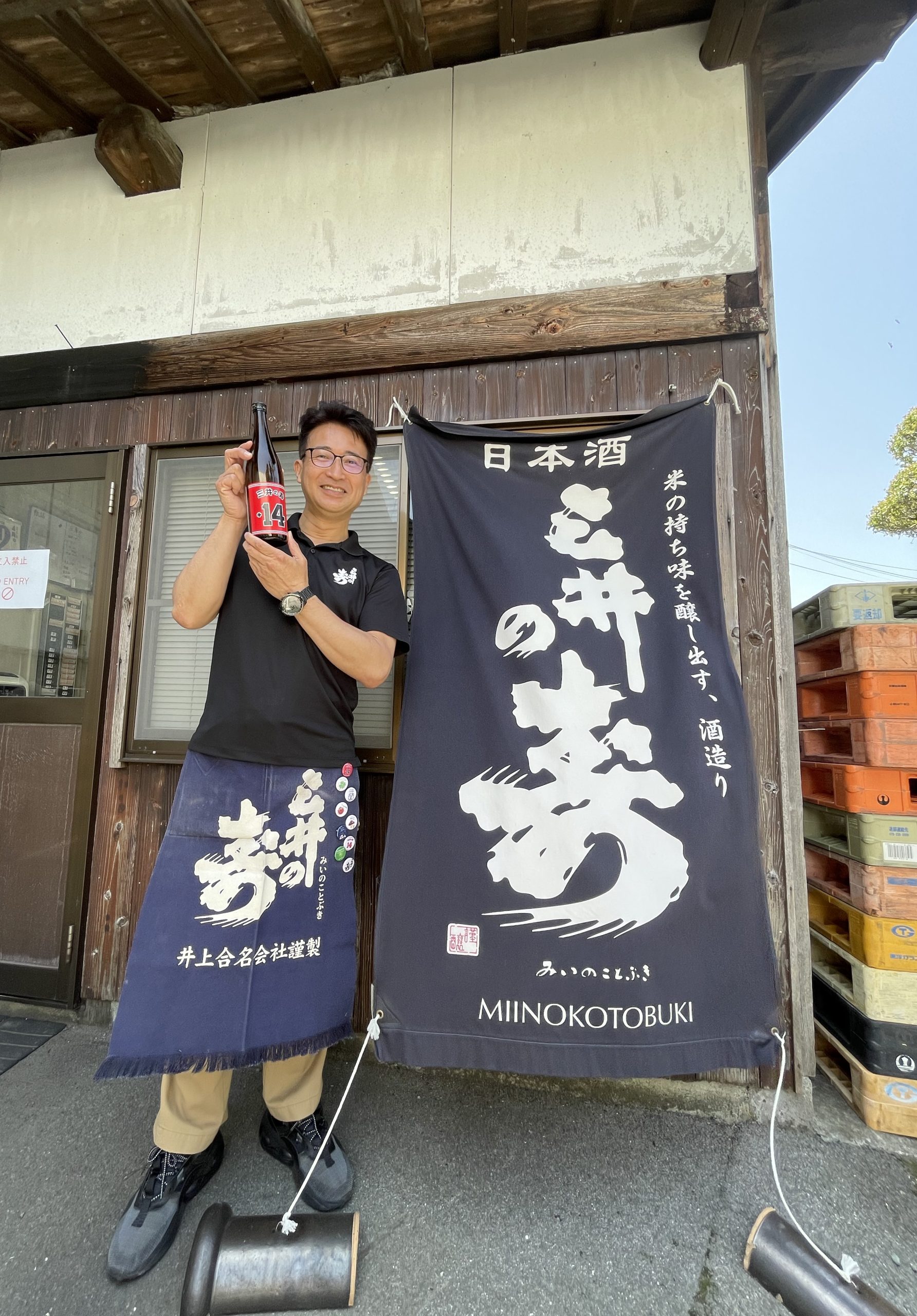 一番奥のブースに、*みいの寿・井上社長が見える。接客や写真対応でご多忙の合間を縫ってお声がけし、再会の喜びと緊張でうまく話せないながらも、日本酒学園!用に写真を撮らせて頂いた。