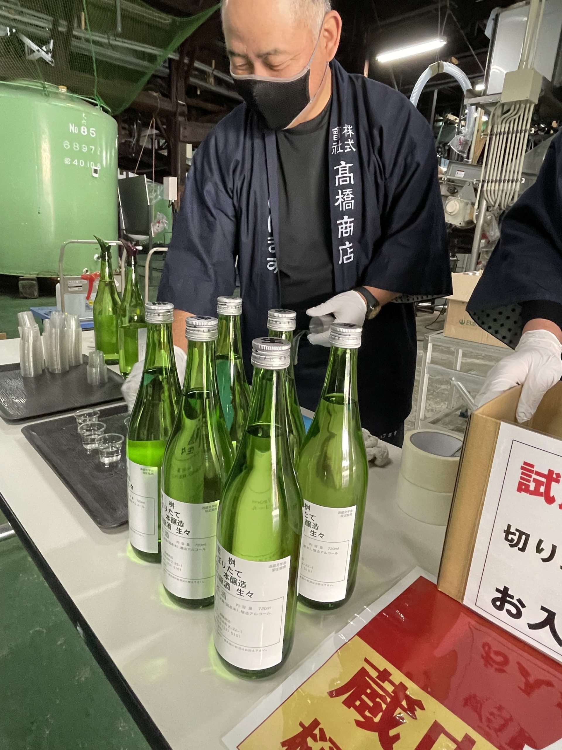 驚きながらも滞在できるのはあと30分程だったので案内状を頂いて急いで向かった。繁桝・高橋商店へはここから徒歩5分ほどで到着できる。蔵開きを駆け足で巡った後は朝日屋酒店に戻り、みなさんが推薦する酒「可也」を純米大吟醸と吟醸を一本ずつ購入できました。