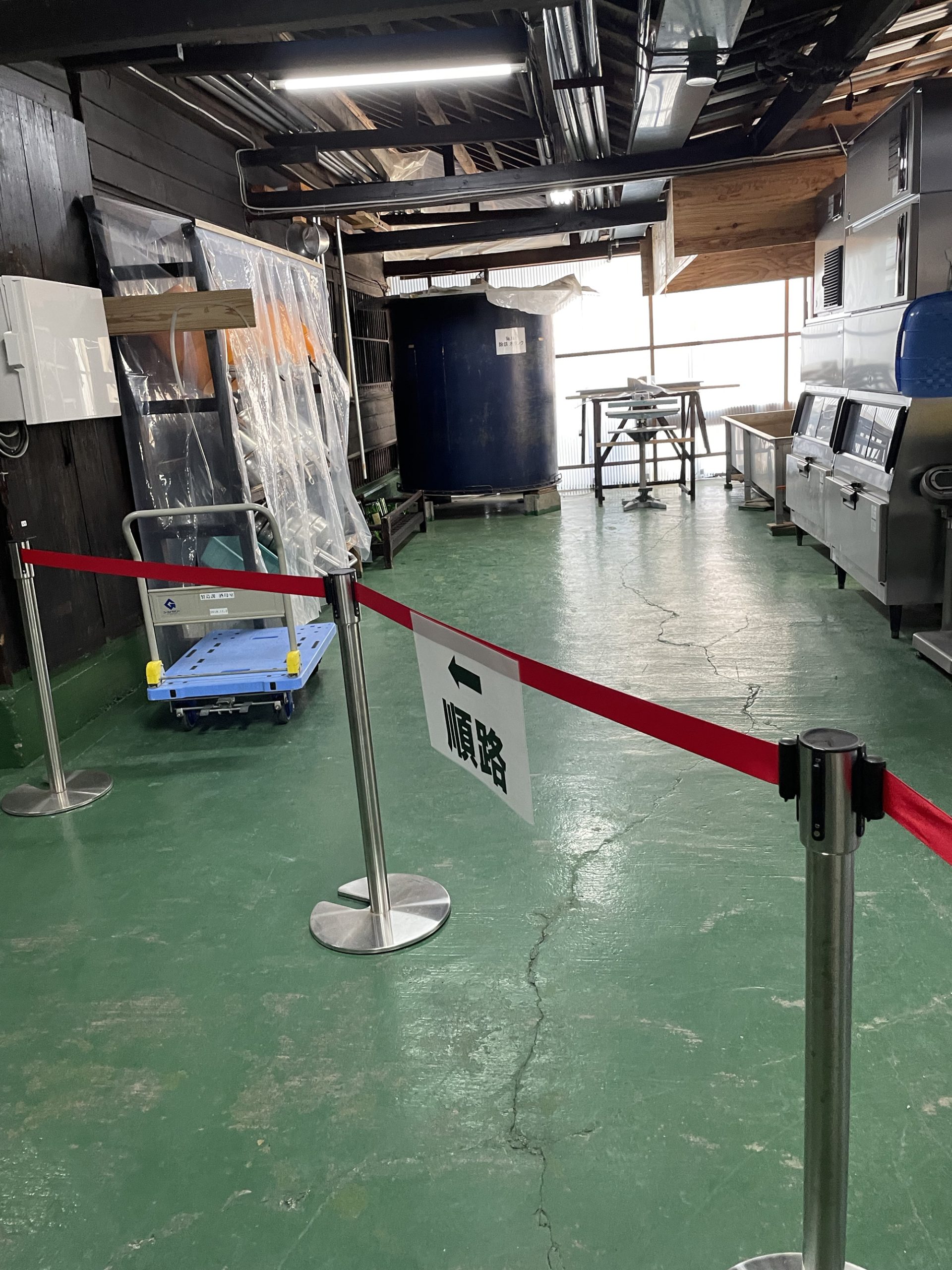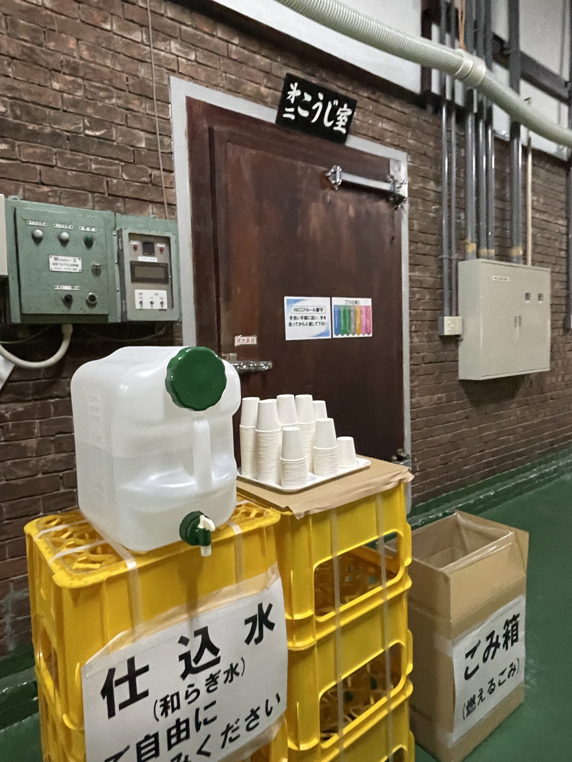 昨年も開催された”お酒好きのための“「会員様限定 蔵開き 秘蔵酒を楽しむ会」。賑わう入場口で早速サービスが。「うめ玉」を、順路の通りに醸造蔵へ。ポイント毎に試飲コーナーと仕込み水があり、飲みながら蔵見学ができる仕組み。