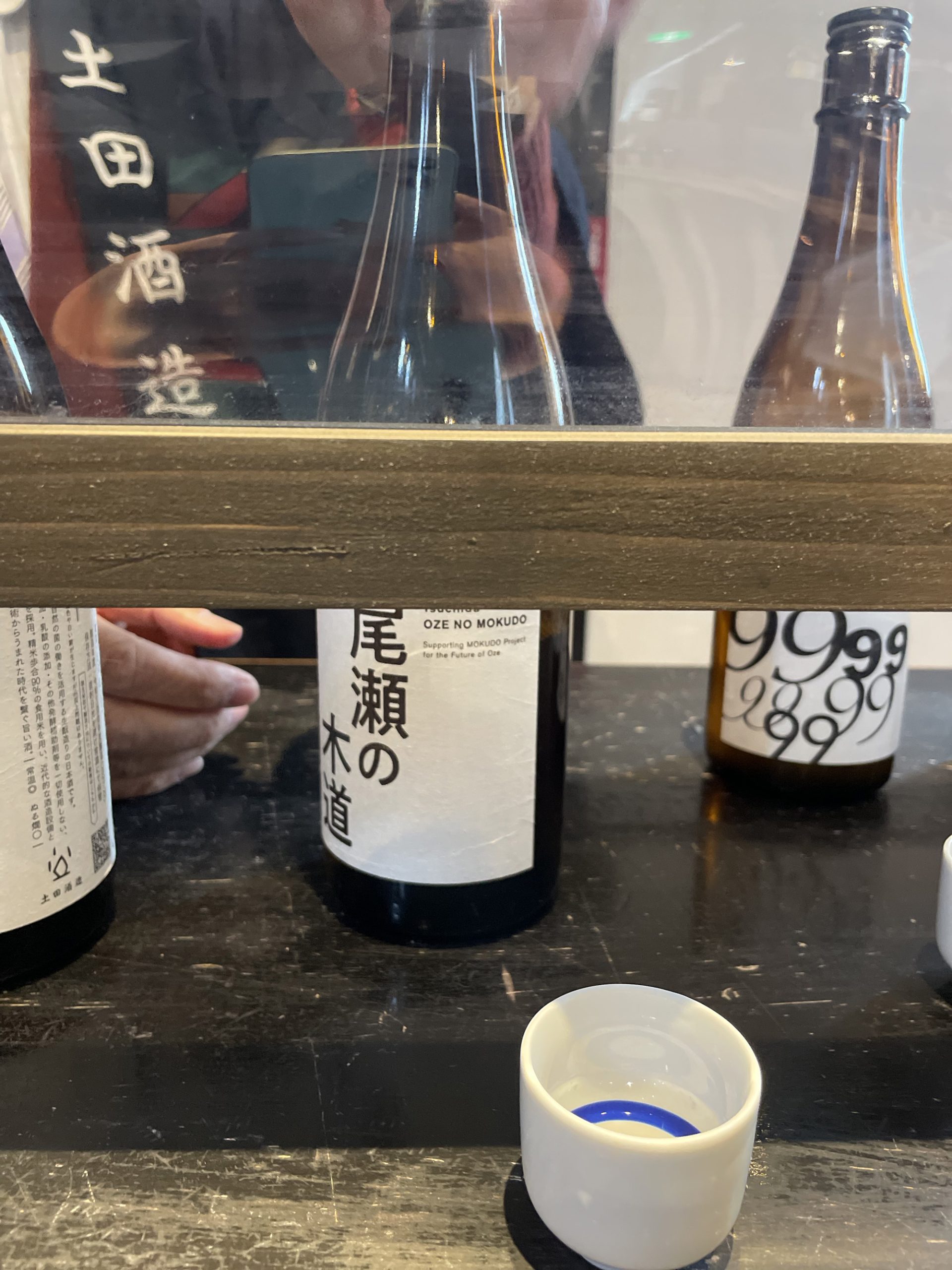 蔵見学を終えて別棟の売店へ。こちらではボトル販売はもちろん、例の“黒粕“や日本酒を使った化粧品などが陳列されている。ほとんどの商品がオンラインショップでも購入できる(黒粕と石鹸を購入。どちらもリピートしたい商品です)が、1番の楽しみは試飲。に注いでいただきつつ、説明を伺いつつ試飲を開始。