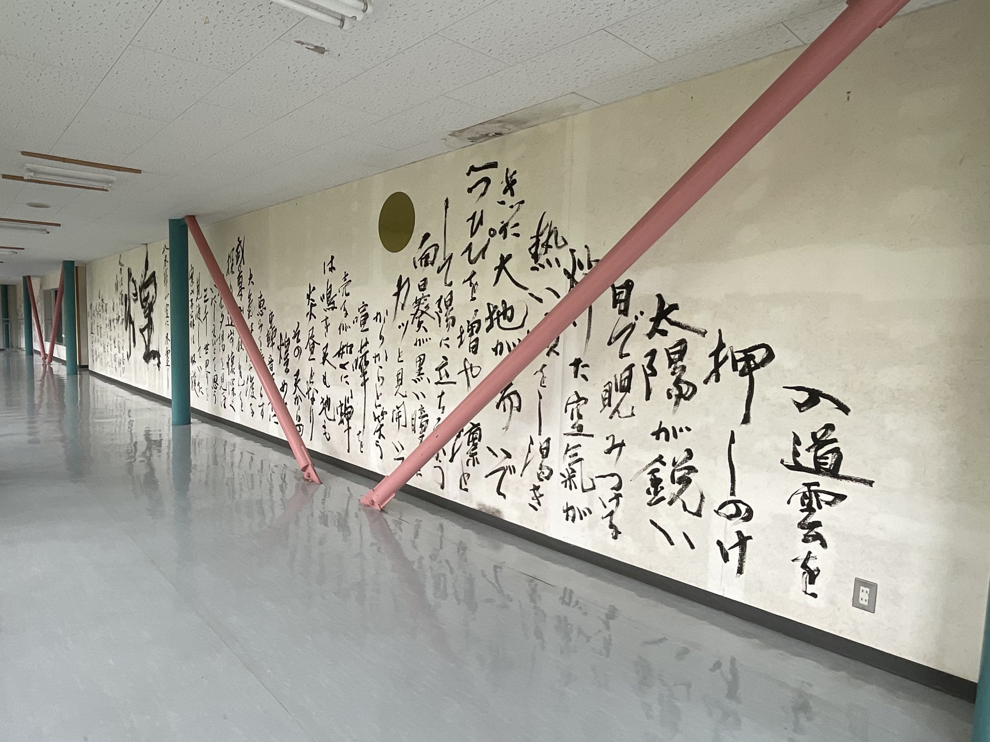 書家が炭を酒で擦って墨汁にし、大胆に書き上げられた詩。