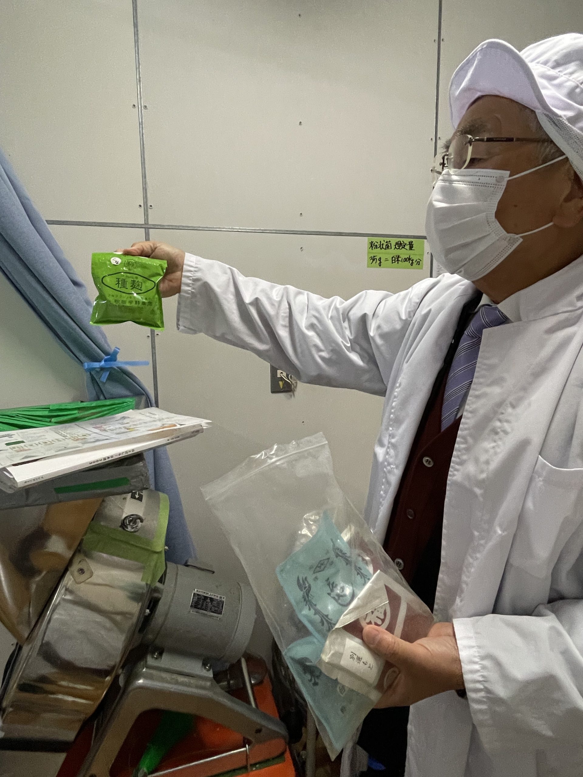 90%精米の蒸米を使って、通常60時間かかる工程を33時間で総ハゼ麹米に仕上げる。そのために通常の10倍ほど麹菌をふりかけているわけだ。作業効率を考え、出来上がった米麹は冷凍保管して都度使用しているとのこと。