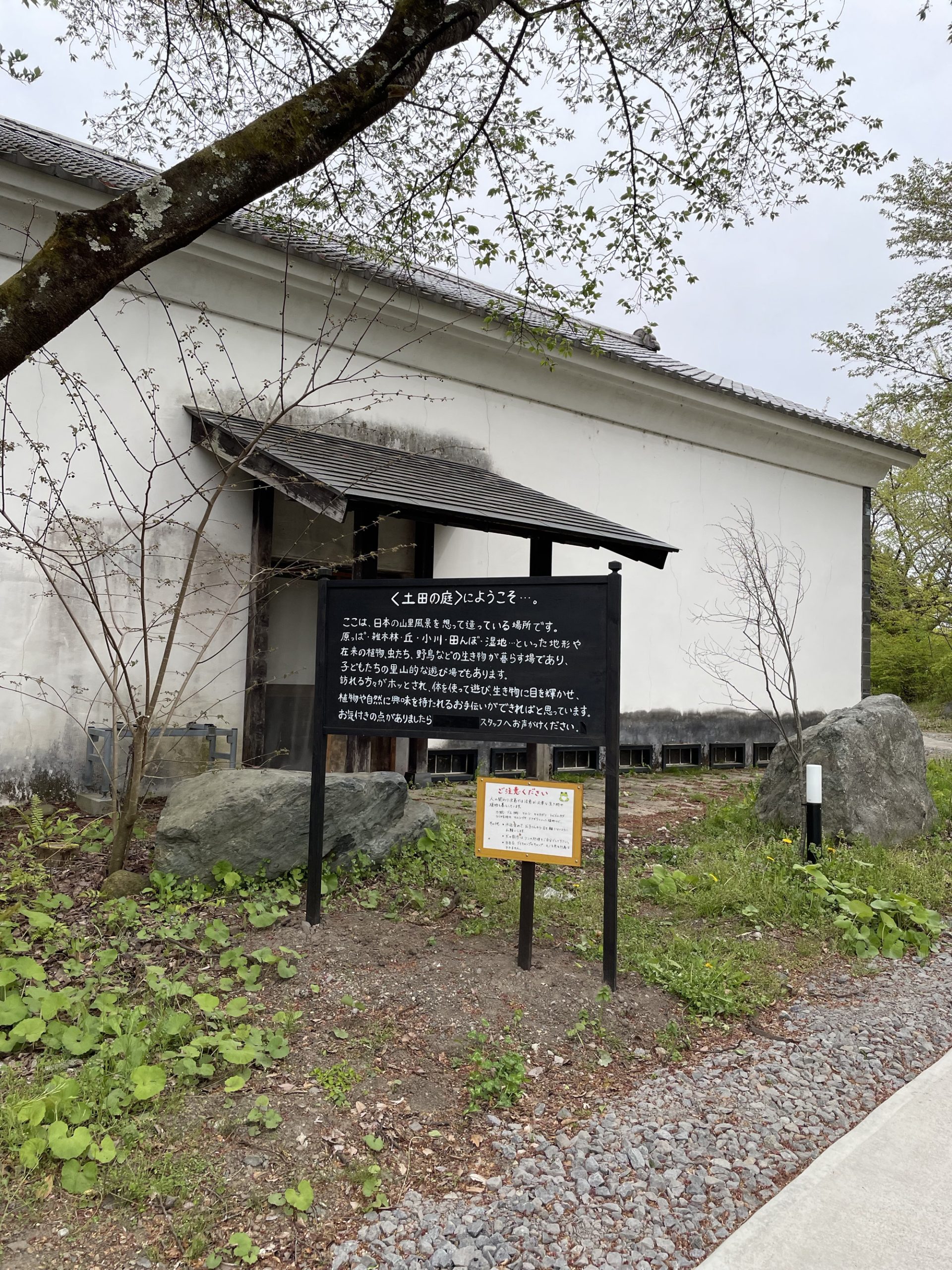 田園プラザから車で10分ほど走ると蔵に到着。木々に埋もれるような形で建つホテルのような土田酒造。左手の古民家は150年前のもの。川場村で養蚕に使われていた建物を移築したそうだ。案内図を見ていると、出迎えに現れたのは土田酒造のはっぴを着た人。