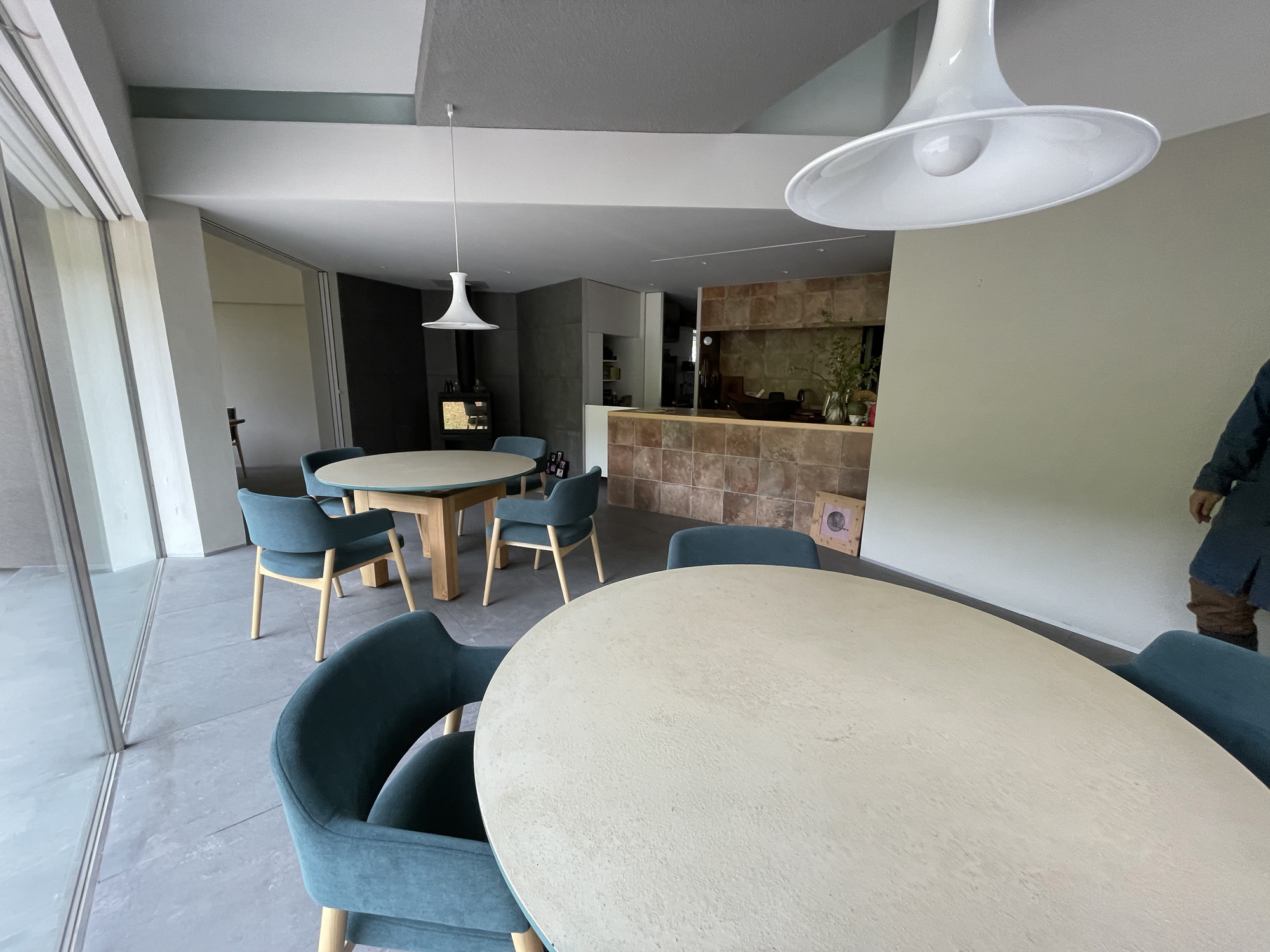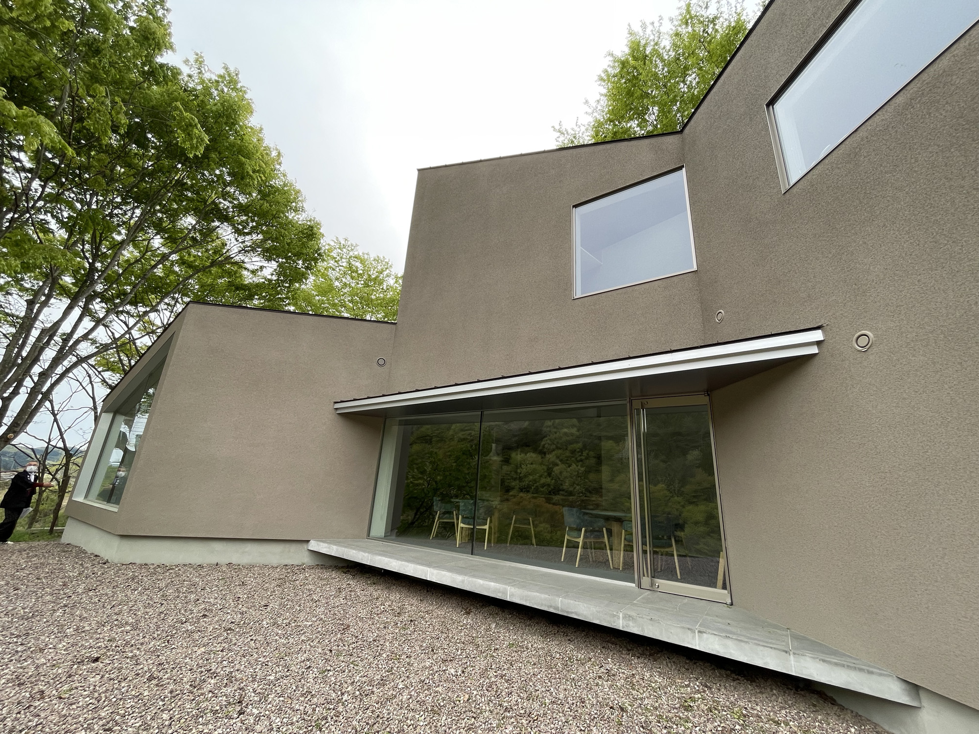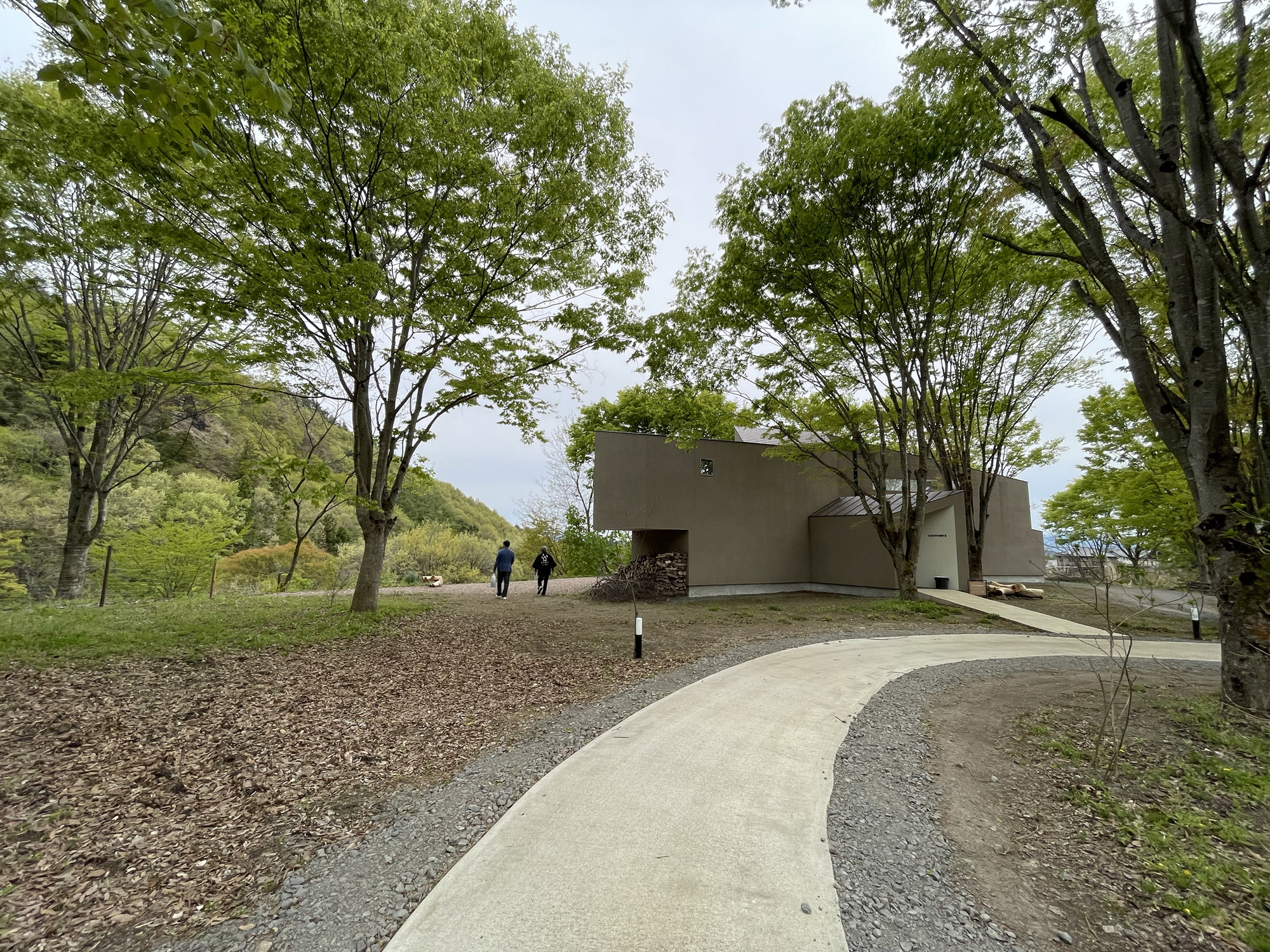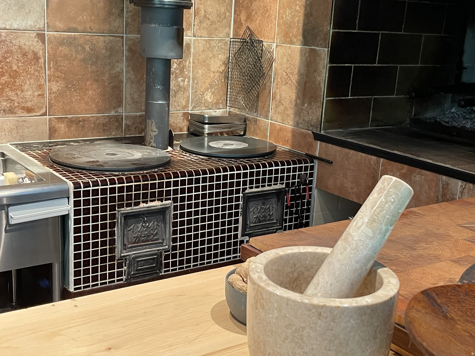 避暑地で見た別荘のような佇まいに圧倒されつつ、外観を眺めてから、裏手で薪を片付けている人に声をかけ「東京で人気店を営んでいたイタリアで修行した料理人」と松田さんのご紹介を受けて店内を見せていただいた。群馬県出身の彼は、2020年から川場村に戻ったとのこと。
