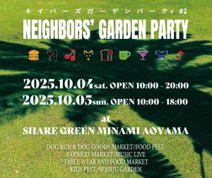 SHERE GREEN MINAMI AOYAMAにて『NEIGHBORs GARDEN PARTY vol.2』が10月に開催決定!